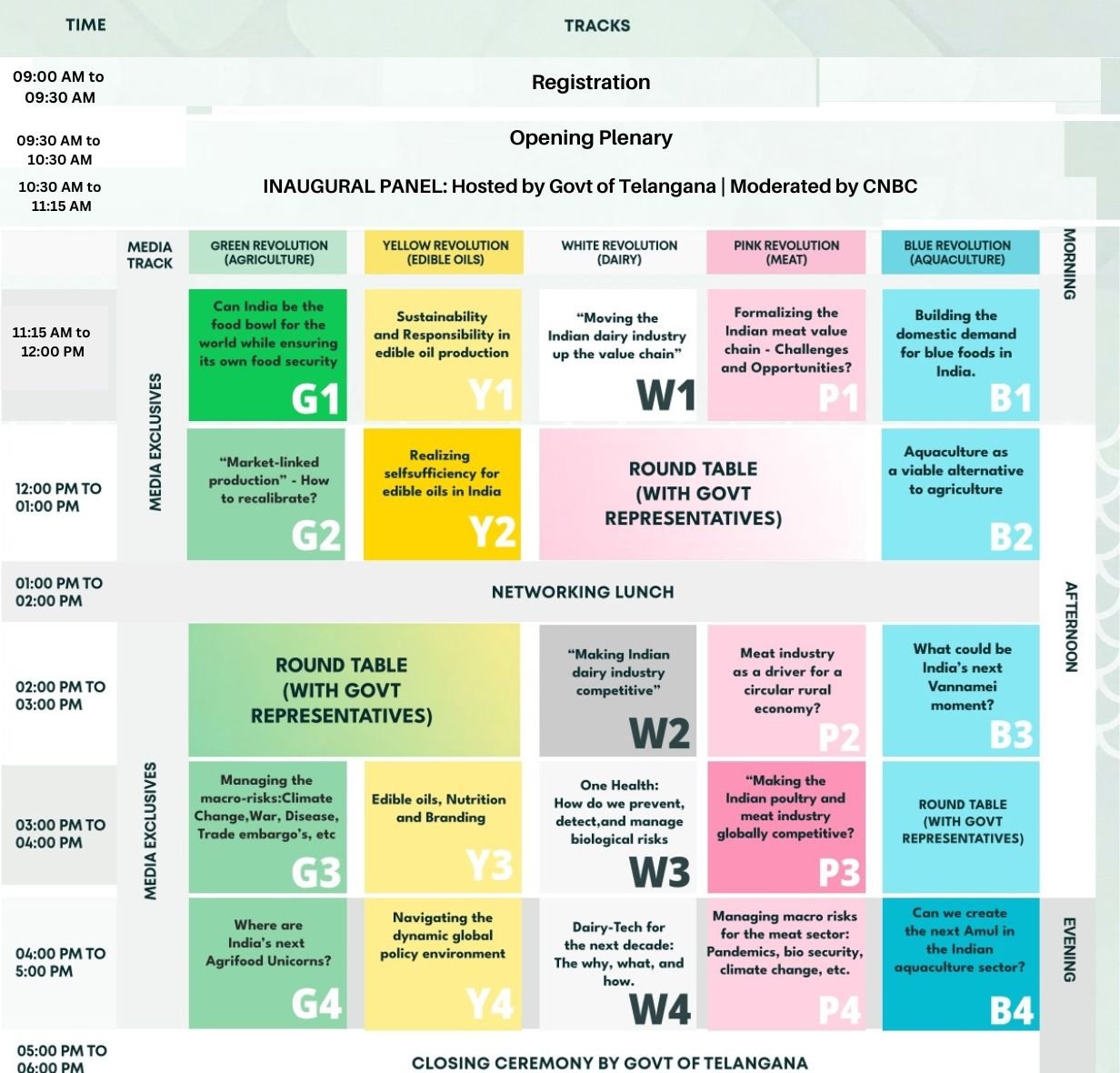 HOME THEMES EVENT SCHEDULE SPEAKERS REPORTS MEDIA BROCHURE CONTACT HOME THEMES EVENT SCHEDULE SPEAKERS REPORTS MEDIA BROCHURE CONTACT 29th April 2023 HICC, NOVOTEL, Hyderabad Event Time Table Knowledge Partners Media Partners CONTACT US Saachi Singh : asdir-fp-inds@telangana.gov.inHussain Sherief : hussain.sherief@thefoodconclave.infosecitindia.com FOLLOW US Instagram Facebook Twitter Linkedin HOME THEMES EVENT SCHEDULE SPEAKERS REPORTS MEDIA BROCHURE CONTACT HOME THEMES EVENT SCHEDULE SPEAKERS REPORTS MEDIA BROCHURE CONTACT Schedule Green Revolution Schedule Yellow Revolution Schedule White Revolution Schedule Pink Revolution Schedule Blue Revolution Media Partners Knwoledge Partners Contact Us Saachi Singh : asdir-fp-inds@telangana.gov.inHussain Sherief : hussain.sherief@thefoodconclave.infosecitindia.com Follow Us Instagram Facebook Twitter Linkedin